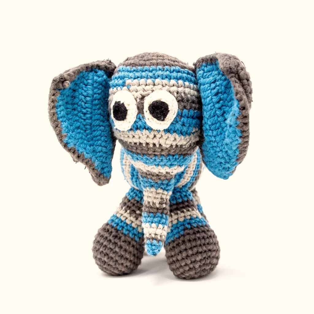Our hand-crocheted safari animals are made in Zambia by team of over 100 local women. Women from different villages around Zambia create the unique parts of each animal which in turn are sent to a studio of “joiners” who put the final crocheted toys together. Your purchase not only helps empower Zambian women in finding independence and financial support, but it also helps support African species conservation efforts.